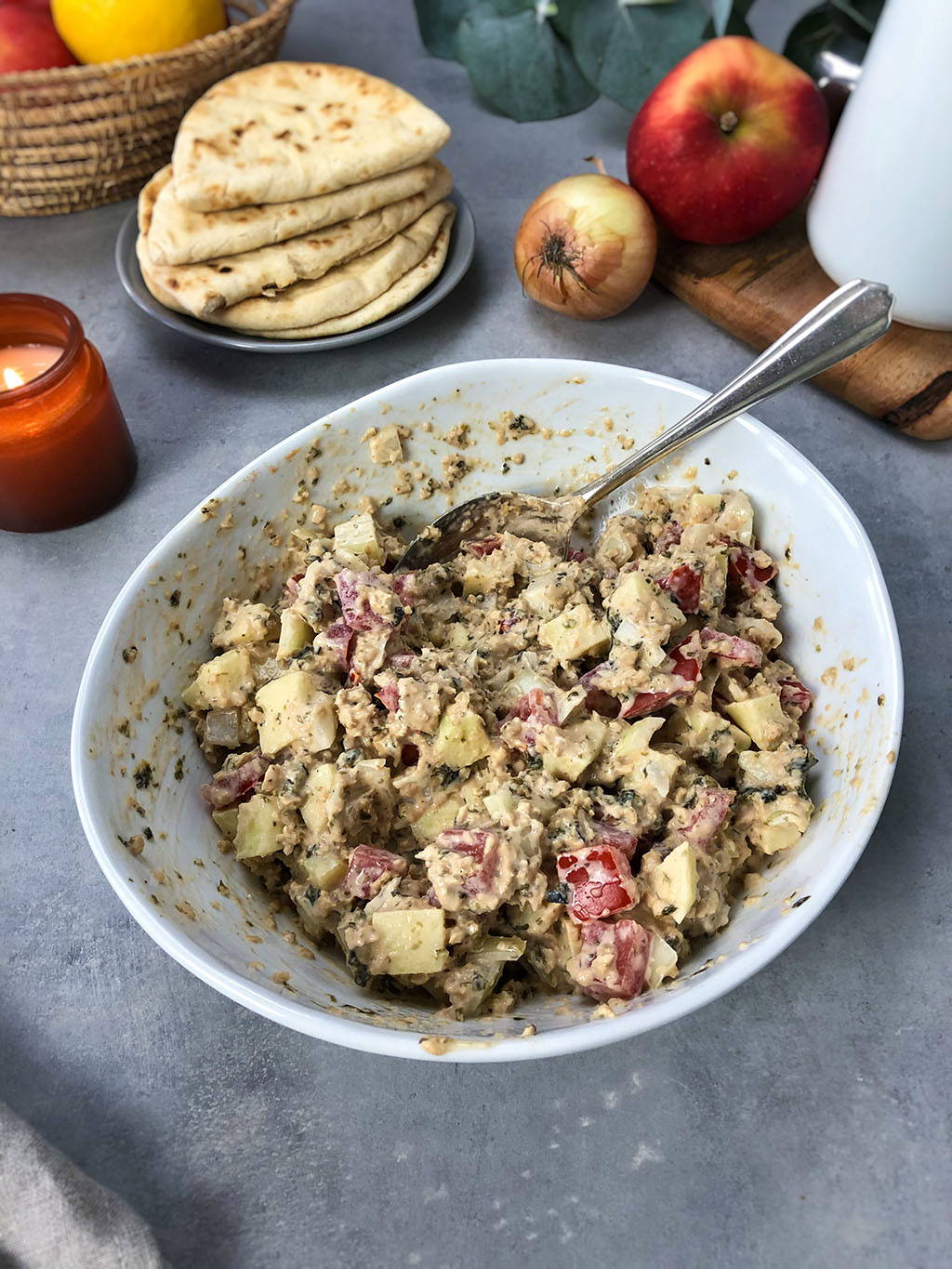 Yes, we hebben een nieuw recept voor een broodje vegan tonijnsalade. Geloof ons, hier kun je niet van afblijven. Het toevoegen van tomaat geeft deze vegan tonijnsalade een heerlijke body en het frisse en zoete appeltje maakt dit vegan broodje tonijnsalade gewoon onweerstaanbaar lekker.