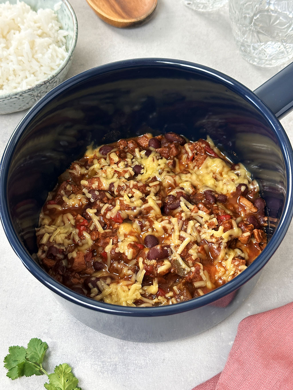 Chili sin carne is een gerecht dat wij regelmatig eten. Wat het zo lekker maakt, is dat het eenvoudig te bereiden is én je meteen een flinke pan vol maakt. Wat we over hebben, vriezen we in. En wanneer we het later uit de vriezer halen en opnieuw in een pannetje opwarmen, smaakt het zelfs nóg lekkerder. Echt een topgerecht om standaard in je vriezer te hebben liggen.