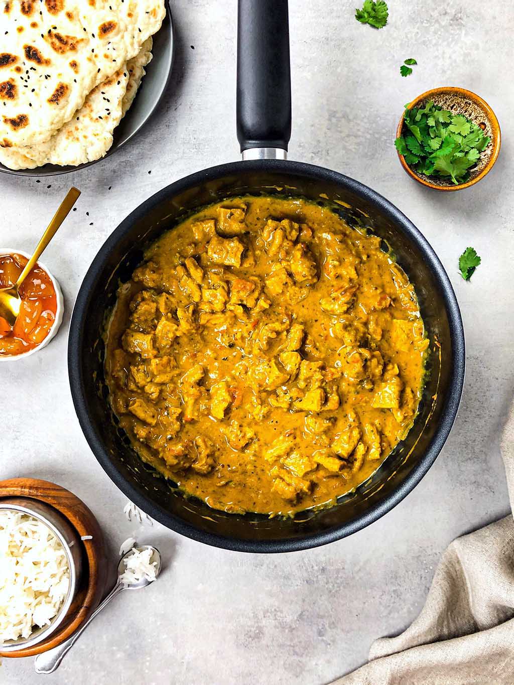 Vaak wordt er yoghurt aan de saus in een curry toegevoegd. Dit geeft niet alleen een heerlijke smaak maar maakt de saus ook extra romig. Wij hebben in dit gerecht gekozen om kokosyoghurt te gebruiken. Maar je kunt natuurlijk ook een andere plantaardige yoghurt gebruiken. Net wat jij lekker vindt.