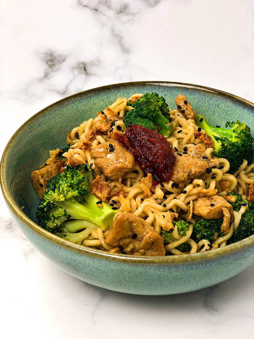 Deze snelle noedels met broccoli zit vol smaak en is heel makkelijk om te maken. De groente in dit gerecht is natuurlijk de broccoli en de extra eiwitten haal je uit de Peas Maker Stukjes. Samen met de noedels en de heerlijke saus, waar we verse knoflook en verse gember aan toevoegen, maakt dit recept tot een complete maaltijd.