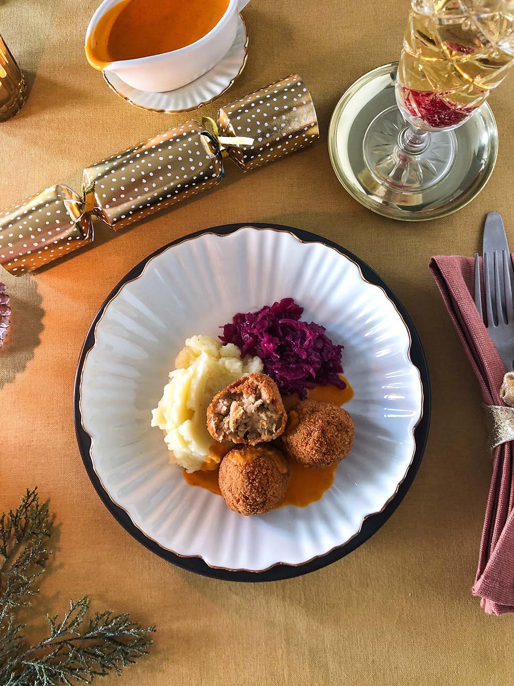 Deze vegan haggisballen zijn een perfecte basis in een hoofdgerecht. Zoals we eerder zeiden kun je het heerlijk eten met een aardappelpuree en rode kool. Maar je kunt het bijvoorbeeld ook lekker eten met rijst en een salade of wat dacht je van gebakken aardappeltjes en broccoli (of andere groenten). Je begrijpt het al, de combinaties zijn eindeloos.