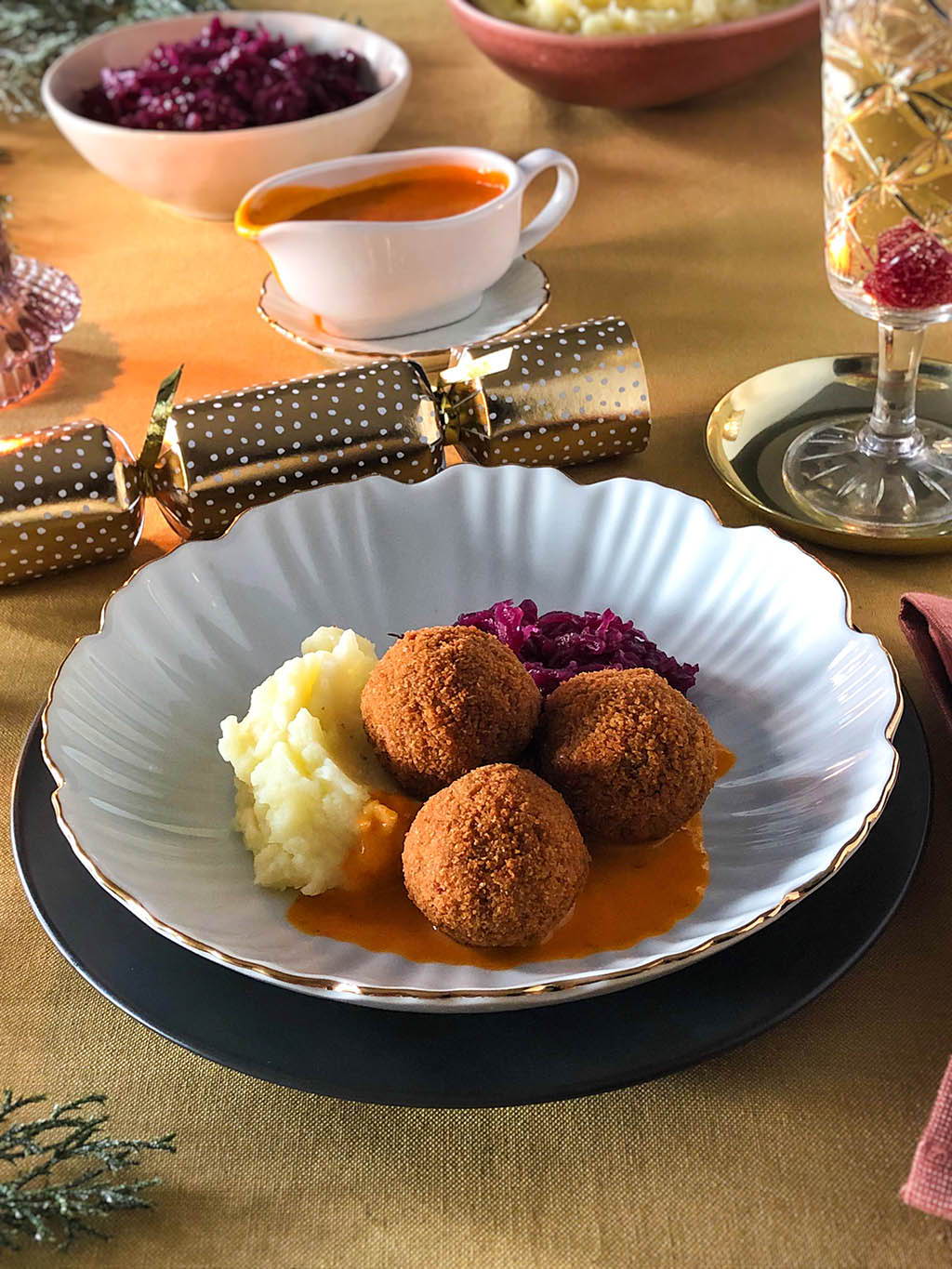 Vegan haggisballenĀ met whiskysausĀ is zoān speciaal gerecht. Ze zijnĀ krokant vanbuiten en lekker vlezig vanbinnen. De combinatie met de romige en lichtzoete whiskysaus is gewoon hemels! Je kunt de vegan haggisballen prima eerder maken en bewaren in de koelkast. Je hoeft ze dan alleen nog maar te frituren. Wij eten dit graag met een heerlijke zachte aardappelpuree en rode kool. Maar deze vegan haggisballen kun je eindeloos combineren met verschillende bijgerechten. Dus, of je nu op zoek bent naar een geweldig vegan hoofdgerecht, waarvan niemand zal raden dat het vegan is of gewoon eens heerlijk wilt eten en iets nieuws wilt proberen, dan is dit het gerecht voor jou.