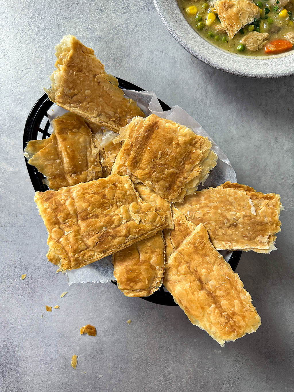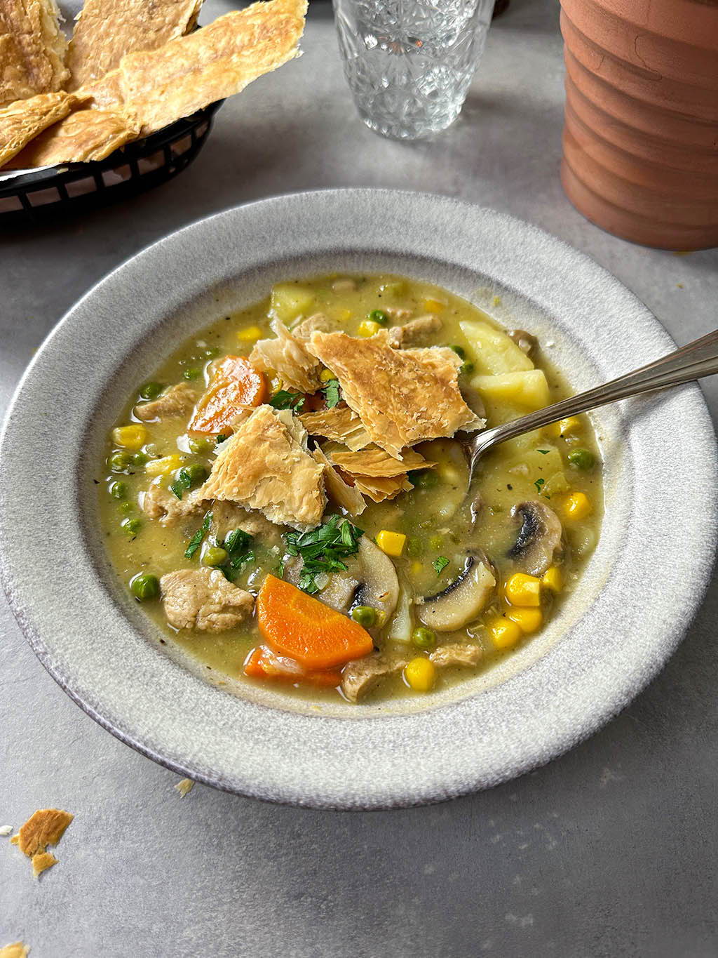 In het recept voor de vegan kippensoep leggen we je ook uit hoe je deze simpele krokante bladerdeeg stukken kunt maken. Geloof ons, het is zo makkelijk en zeker een aanrader om eens te proberen.