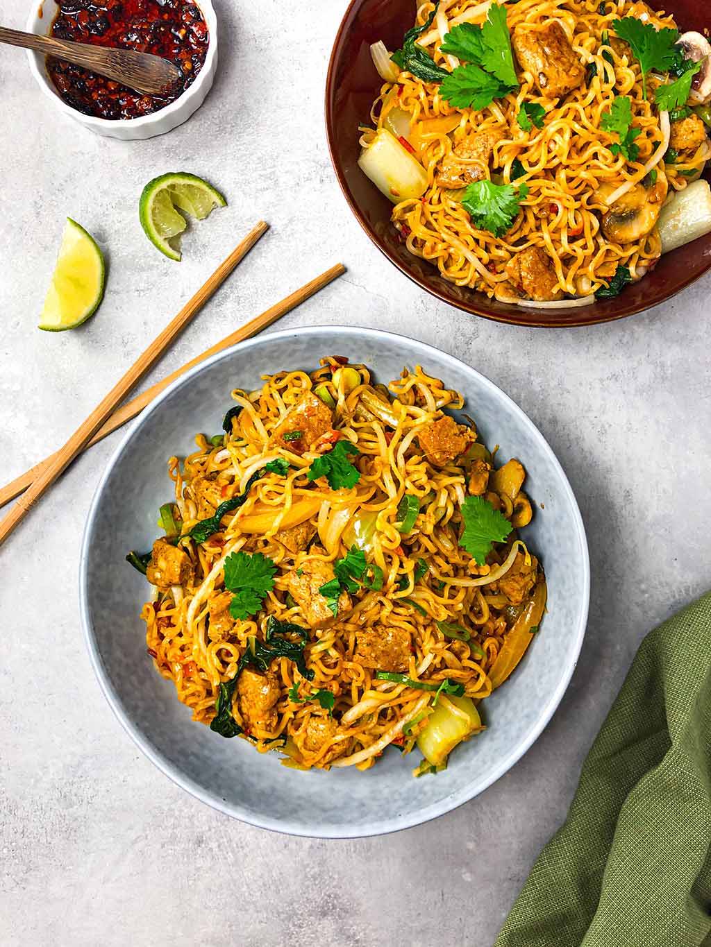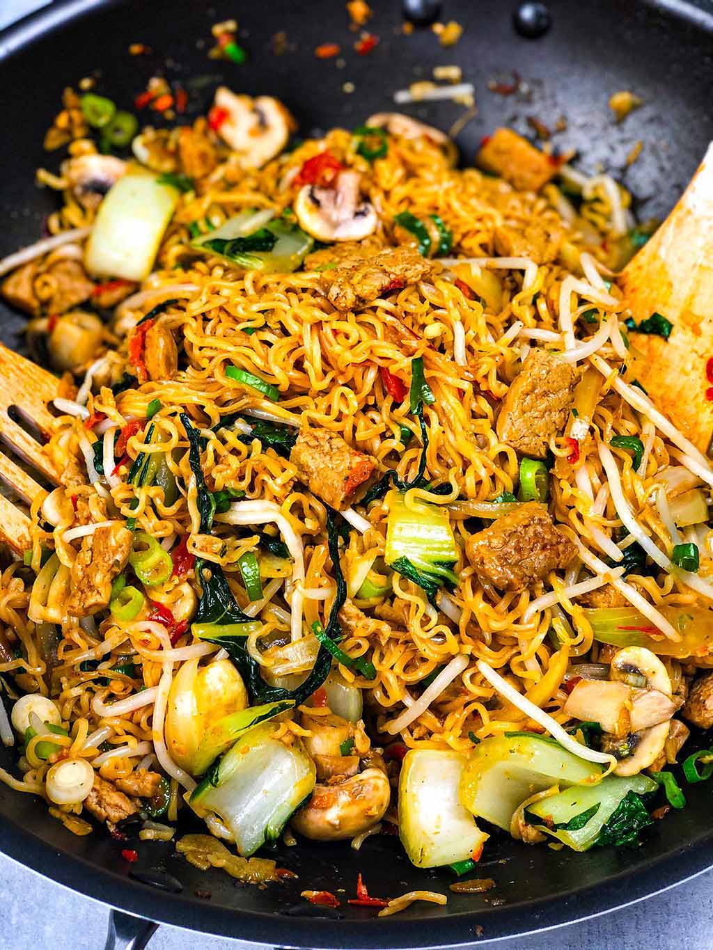 Vegan ramen maken maar dan net wat anders. Ramennoedels worden, zoals de meeste het waarschijnlijk kennen, bereid in een soep of bouillon. Maar wist je dat je ramennoedels ook perfect kan gebruiken om mee te wokken?
