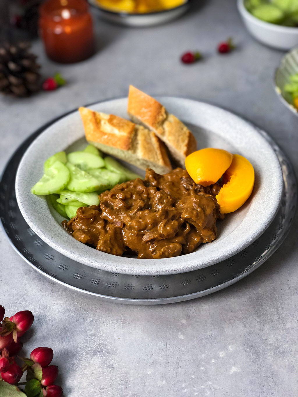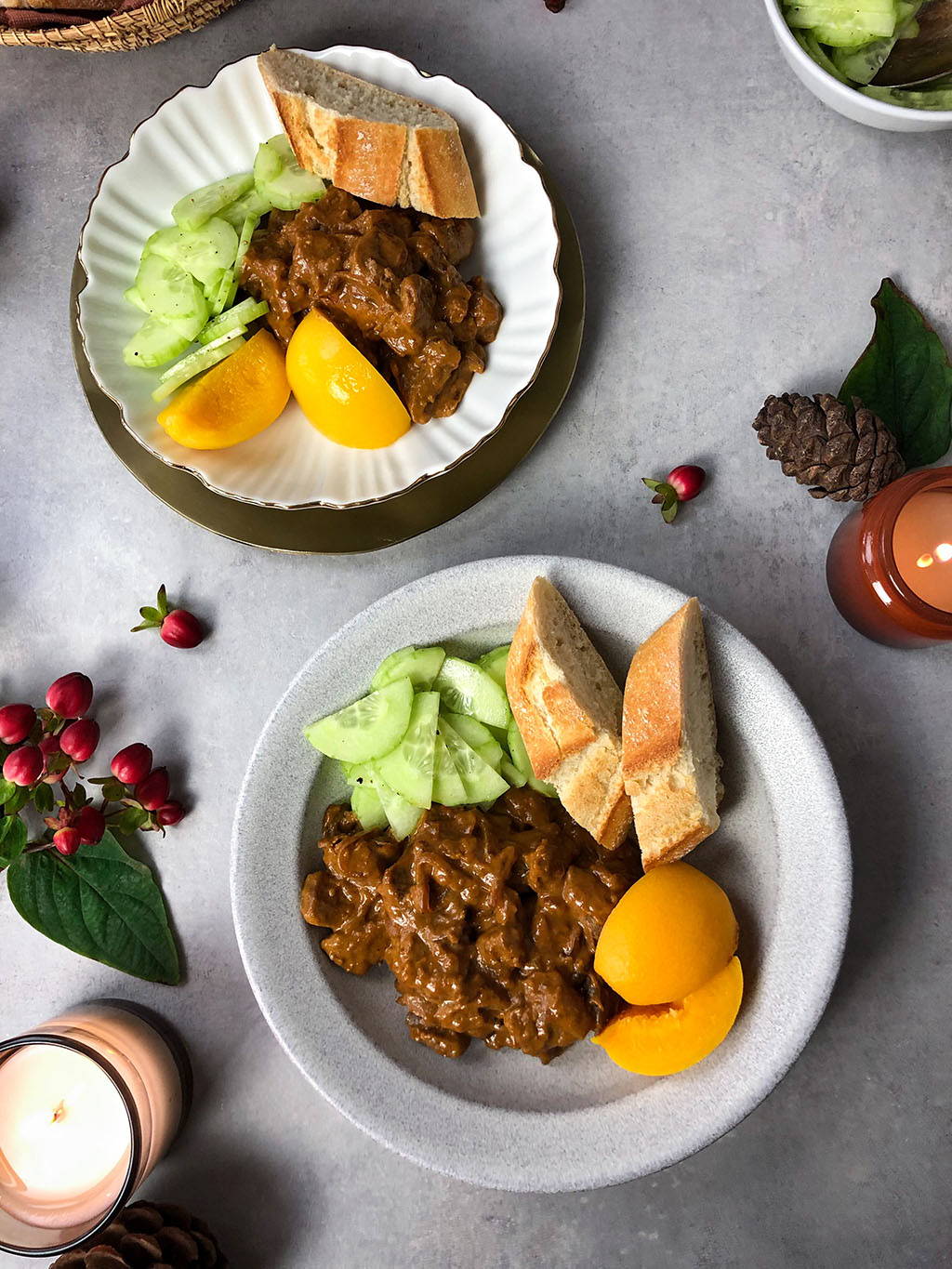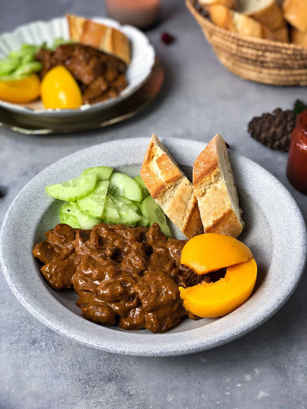 Maar je kunt het ook eten met rijst, gebakken aardappels of frietjes en groenten naar keuze. Wij vinden het ook altijd lekker om er een komkommersalade bij te maken. Een heerlijke frisse tegenhanger, vinden we zelf.