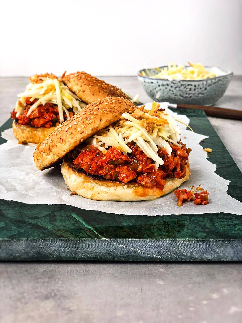 Vegan sloppy joes zijn zó lekker en helemaal niet moeilijk om te maken. Dit Amerikaanse broodje gevuld met een vegan gehaktsaus is echte comfort food. Toen wij dit broodje aten met alleen een vegan gehaktsaus was het al superlekker maar we miste toch een frisse tegenhanger. Daarom delen we ook een lekkere vegan witte koolsalade die perfect werkt als topping voor op de vegan sloppy joes. Garneer eventueel nog af met gebakken uitjes en je hebt het lekkerste broodje van de hele wereld! Geloof ons, dit wil je proeven!