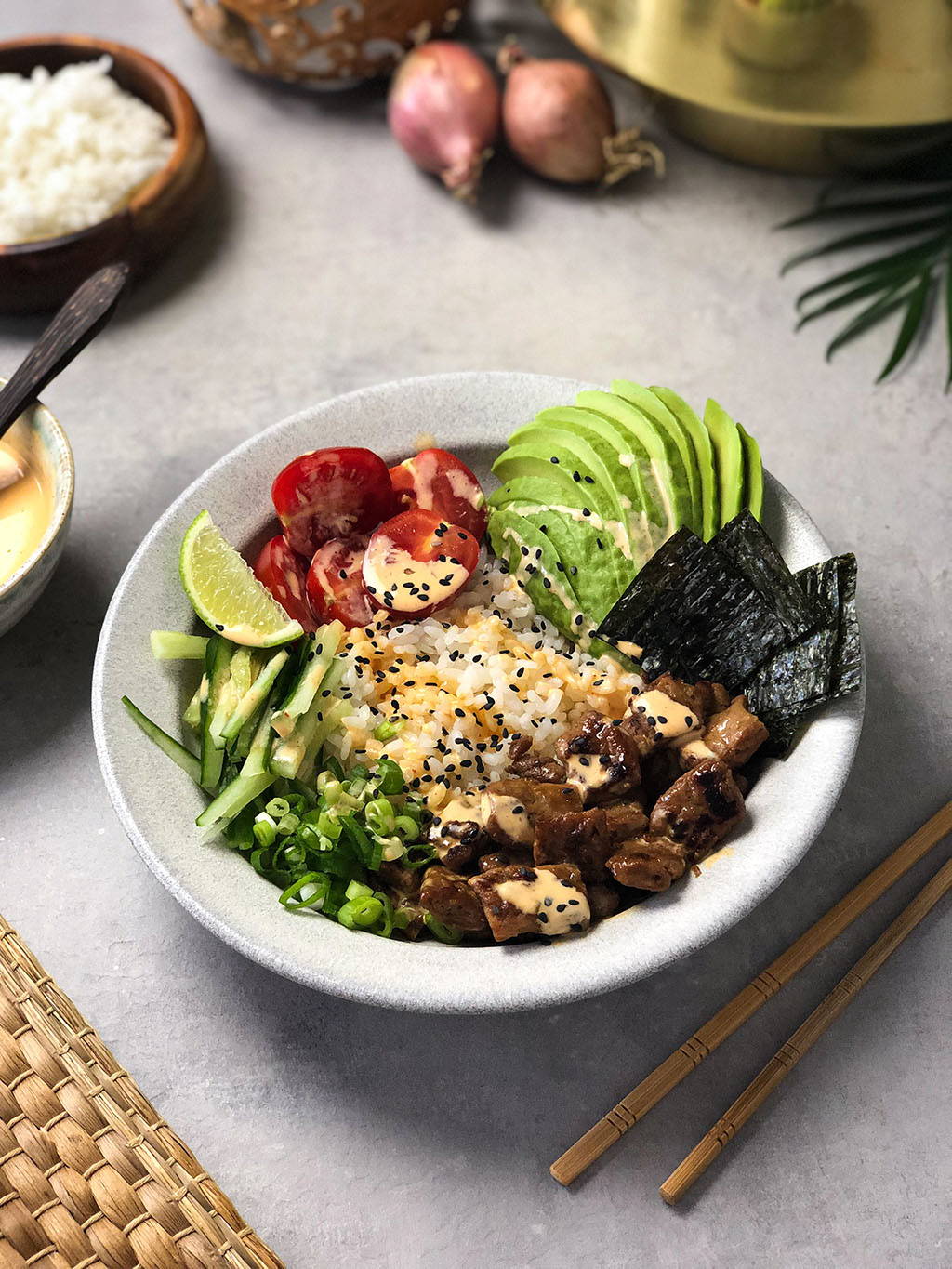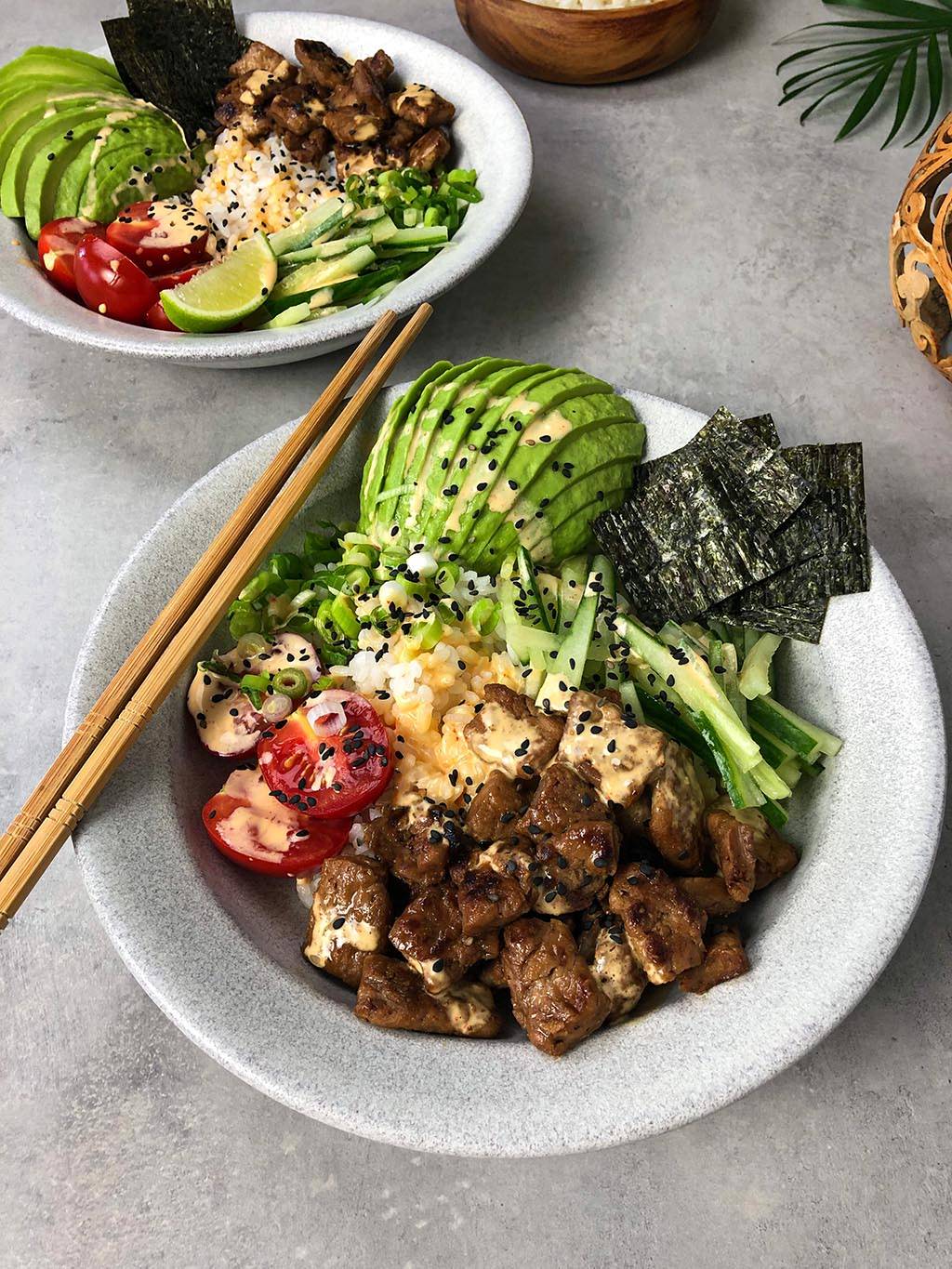 Een vegan sushi bowl is eigenlijk gewoon de Engelse benaming voor sushi maar dan in een kom. Zo hoef je niet alle losse ingrediënten in elkaar te rollen. Dit scheelt heel veel tijd en gepriegel. Soms is het heerlijk om zo lekker creatief in de keuken te staan, maar hier hebben wij ook niet altijd zin in of tijd voor. Daarom is een vegan sushi bowl de perfecte uitkomst als je op een snelle manier vegan sushi wilt eten.