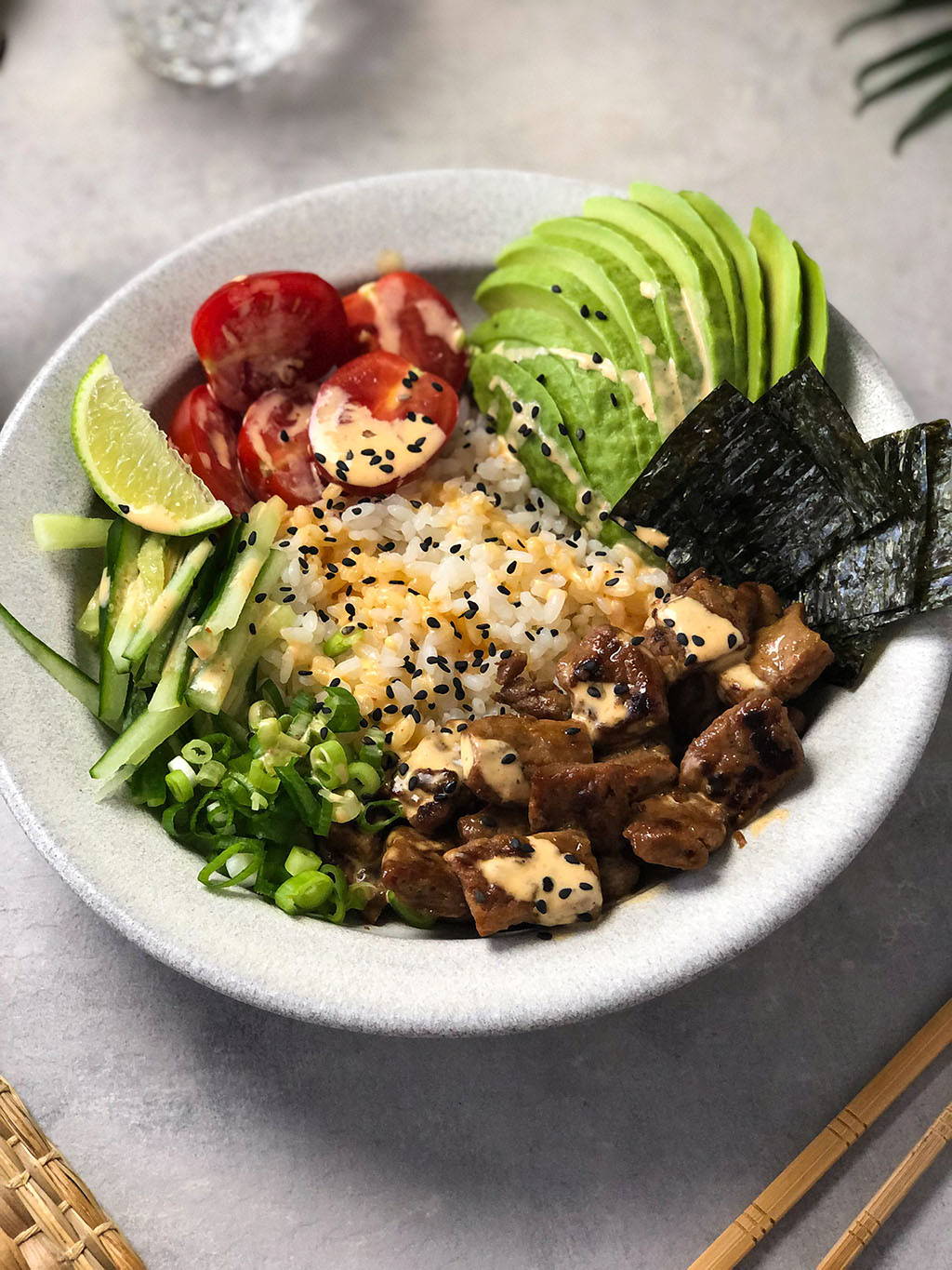 Deze vegan sushi bowl is een nieuwe favoriet en wat ons betreft ultieme vegan comfort food. Ben jij ook zo dol op vegan sushi maar heb je geen zin om uren in de keuken te staan? Dan hebben wij goed nieuws. Want met dit recept maken wij overheerlijke vegan sushi maar dan gewoon in een kom. Hierdoor ben je al in 30 minuten klaar. Echt een top gerecht voor op drukke dagen waar je hunkert naar een bord good food!