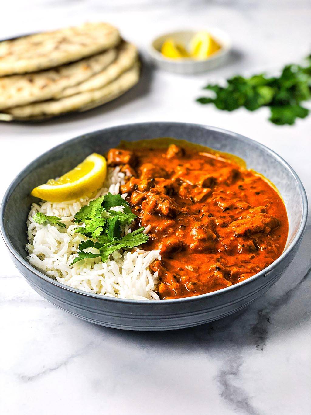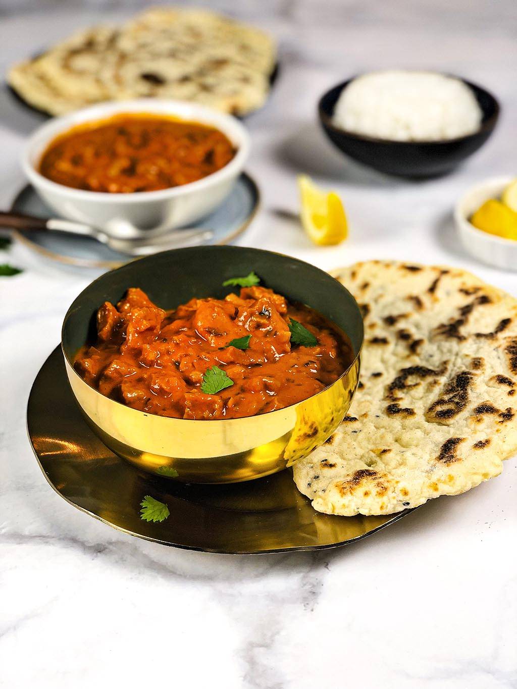 Natuurlijk kun je zelf beslissen wat je lekker vindt om bij een vegan tikka masala te eten. Maar normaal gesproken wordt het gegeten met basmati rijst en naanbrood. Het wordt ook vaak geserveerd met een heerlijke dahl. Dahl is een gerecht dat gemaakt wordt met linzen. Je kunt de vegan tikka masala ook lekker garneren met verse koriander.